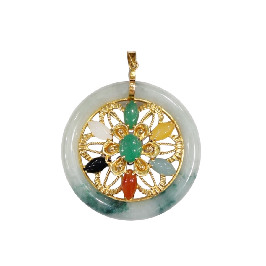 Multi-colored Jadelite set in 14k yellow gold