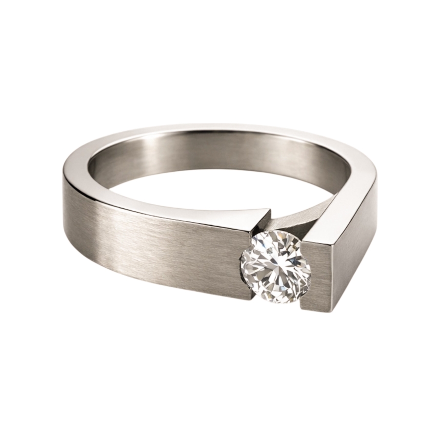 0.30ct round Diamond solitaire in 18k white brushed gold