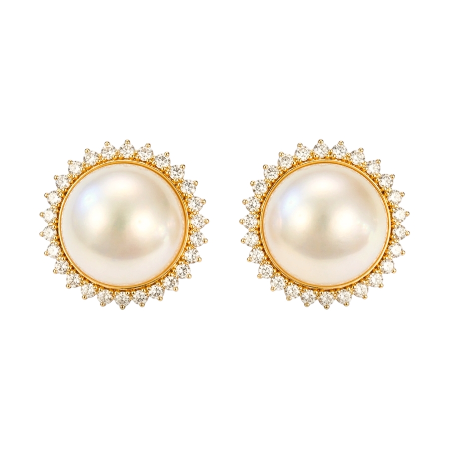 1.20ct Diamonds and Pearl in 18k yellow gold
