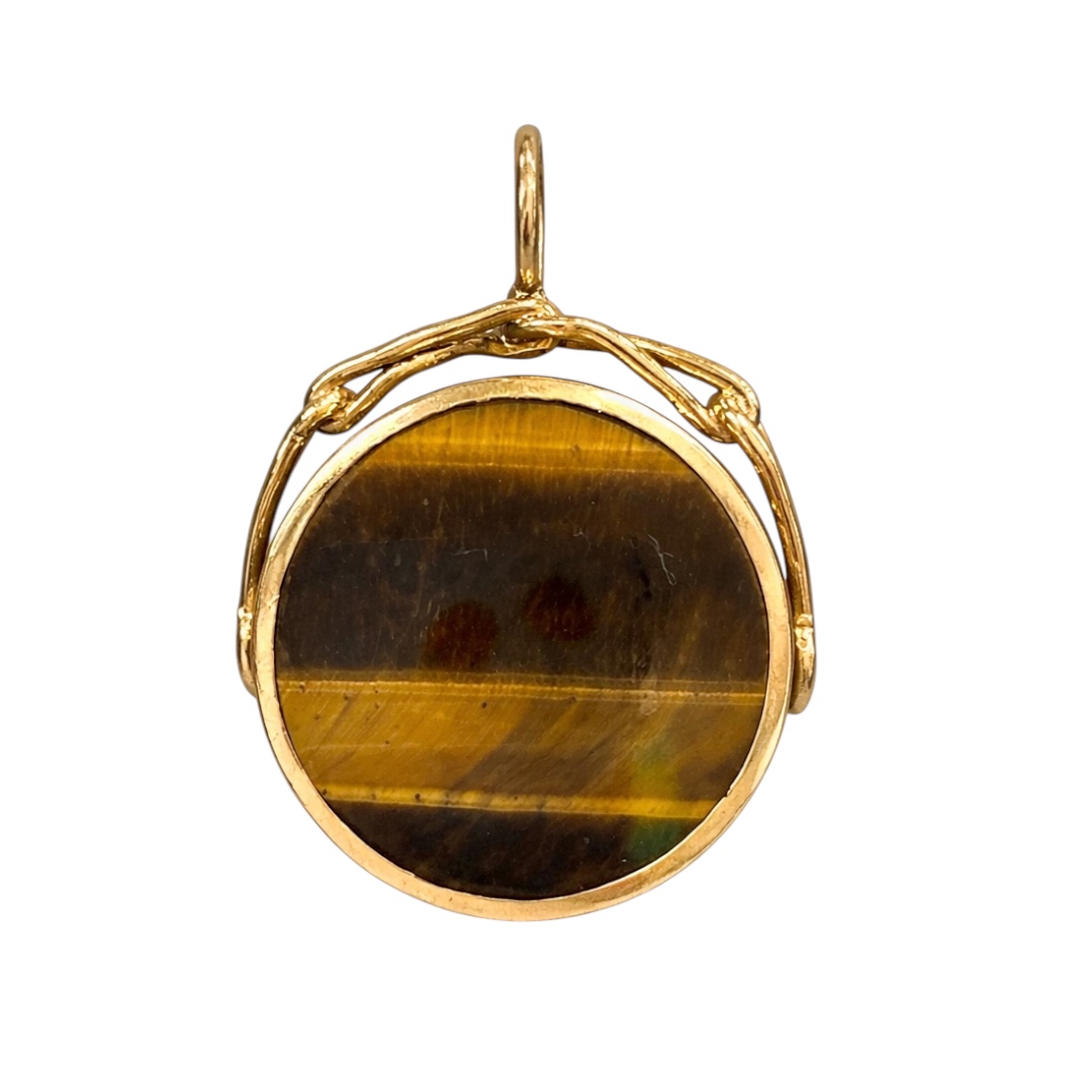 Tiger eyr and sodalite pendant set in 9k yellow gold